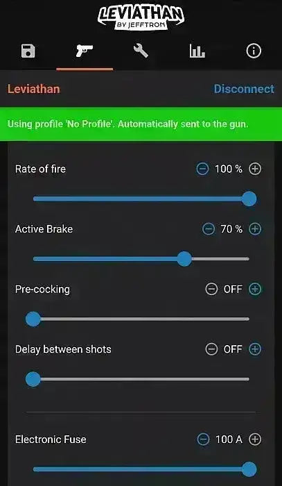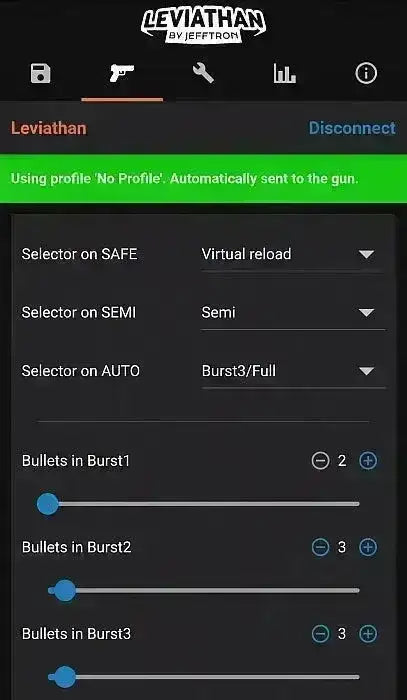 - Virtuell "low cap"-inställning låter dig välja antalet skott och tvinga vapnet att sluta skjuta när du når 0