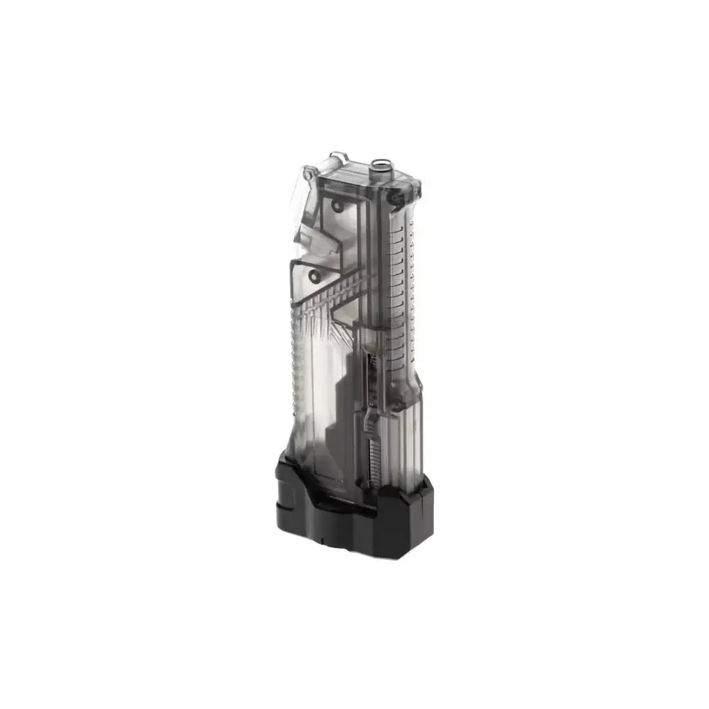En praktisk og fleksibel speedloader som gir deg både kompakt lading og muligheten til å utvide kapasiteten med en hel BB-flaske – perfekt for seriøse spillere som ikke vil gå tom midt i kamp.