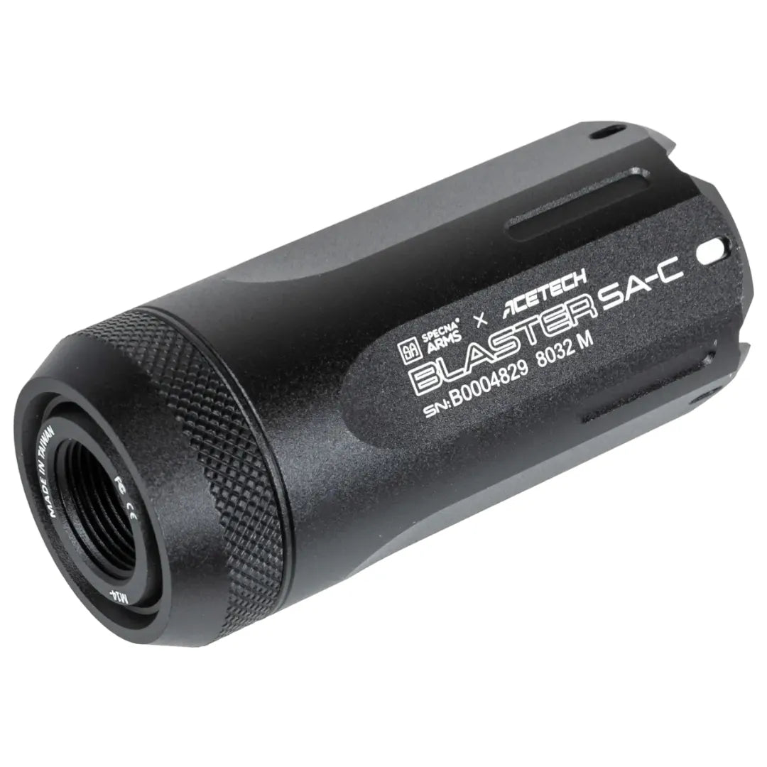 Blaster SA-C tracer suppressor är resultatet av ett samarbete mellan Specna Arms och AceTech, en erfaren tillverkare känd för högkvalitativa tillbehör till airsoftvapen.