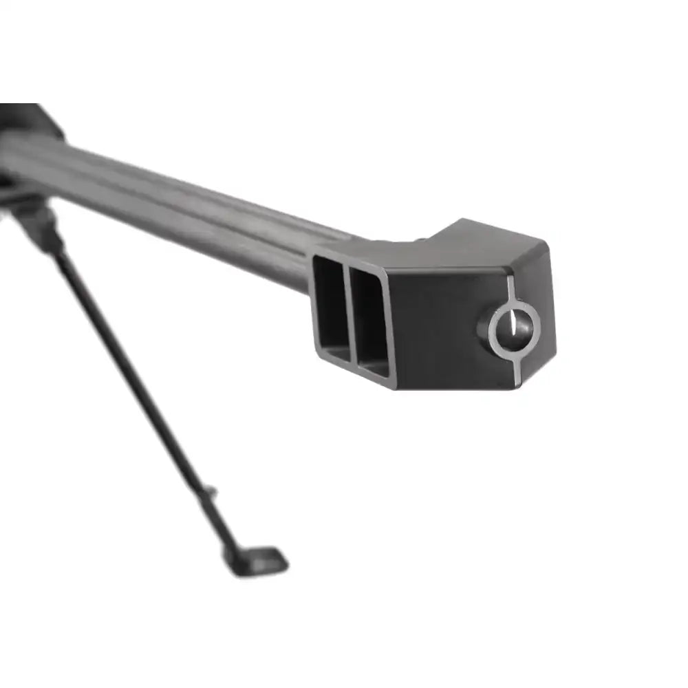 Geväret har en 21 mm skena längst upp för att fästa optik, vi rekommenderar Detta laddad - som passar perfekt på skenan med de medföljande monteringsringarna. I kartongen medföljer både en bipod OCH en monopod som kan fästas, tillsammans ger de en särskilt stabil och kontrollerad siktbild.