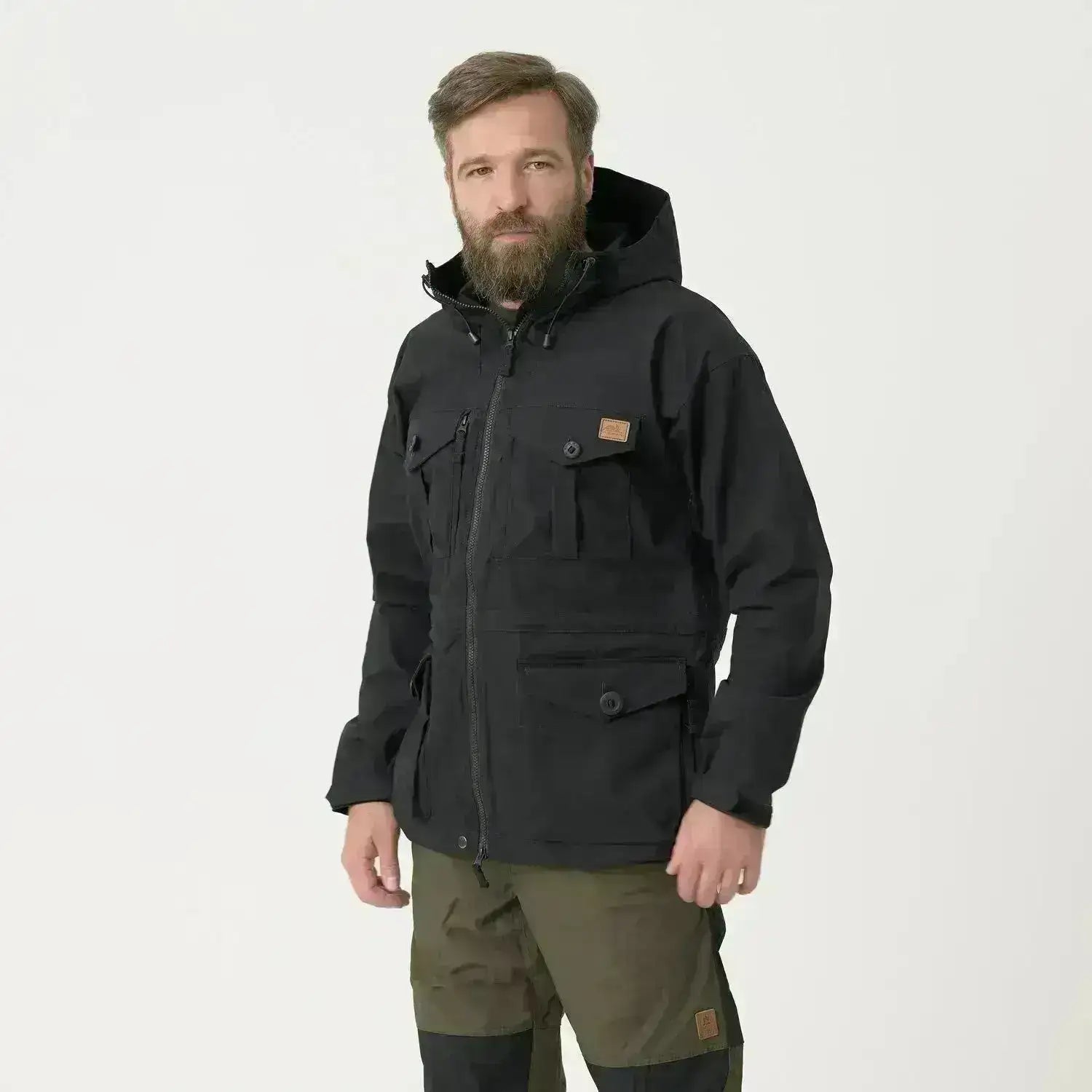 Helikon-Tex SAS Smock är en uppdaterad version av den klassiska militärjackan, designad för både taktisk användning och bushcraft. Den är tillverkad av slitstarkt Duracanvas-material som kan vaxas för ökat skydd mot lätt regn och snö. Denna smock fyller gapet mellan två av Helikon-Tex anorakker: den tyngre Pilgrim Jacket och den lättare Woodsman Jacket. Den lätta konstruktionen och justeringsmöjligheterna gör jackan mycket mångsidig och lämplig för alla väderförhållanden från sommar till vinter.