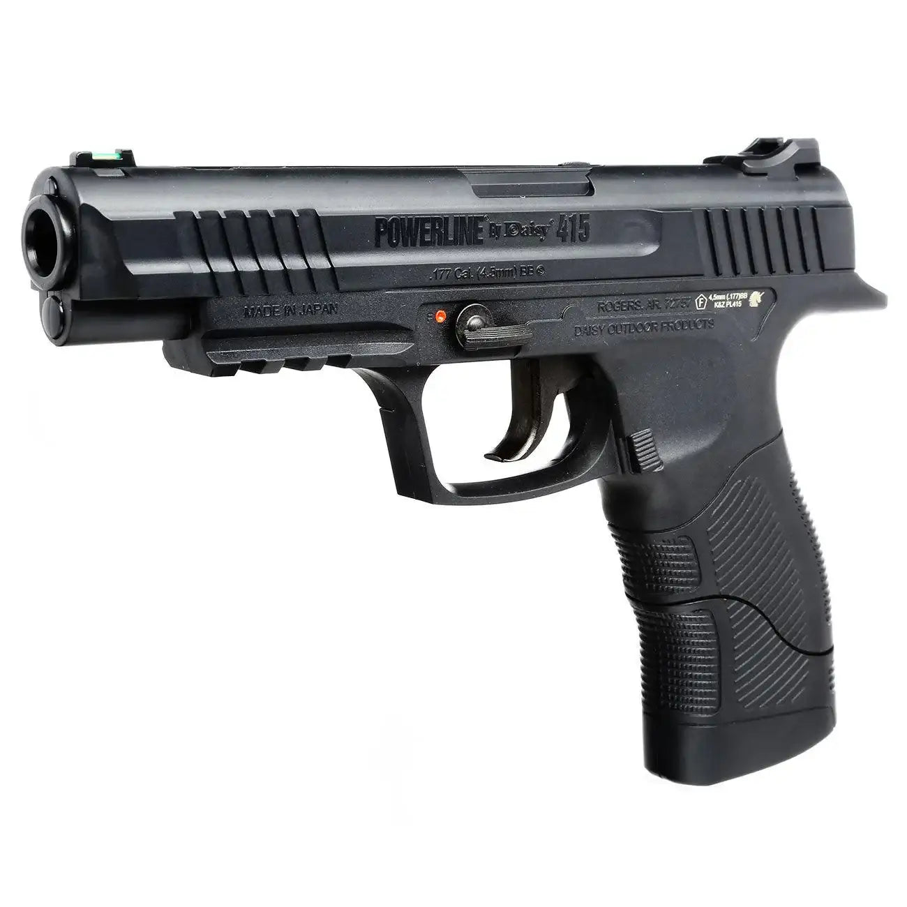Daisy Model 415 er en lett og praktisk .177 kaliber CO2-pistol som kombinerer enkel håndtering med god skyteopplevelse. Pistolen har et innebygd magasin med plass til 21 stålkuler (BBs) og leverer en utgangshastighet på opptil 495fps – godt egnet for presis blinkskyting hjemme eller på hytta.