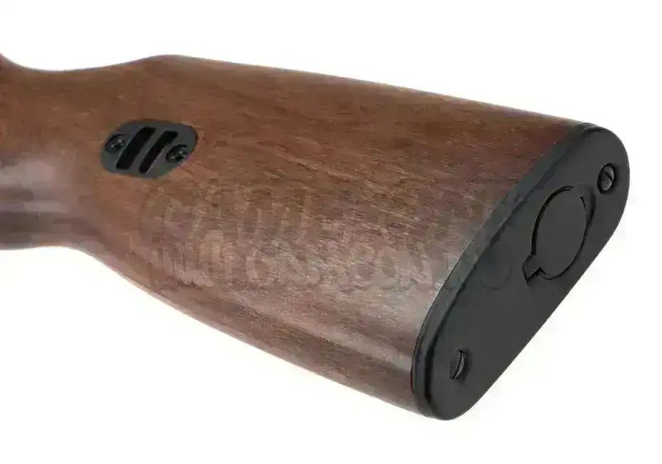 Detta historiska ryska SMG-gevär såg dagens ljus 1940 och fick smeknamnet "papasha" - vilket betyder far. SMG-geväret var känt för att ha en otroligt hög eldhastighet. Denna replik har en stålmottagare och själva stocken är gjord av snyggt fuskträ. För extra kul och realism har detta airsoftgevär elektriskt bakslag, vilket gör att bulten går tillbaka vid varje skott och man känner en liten rekyl.