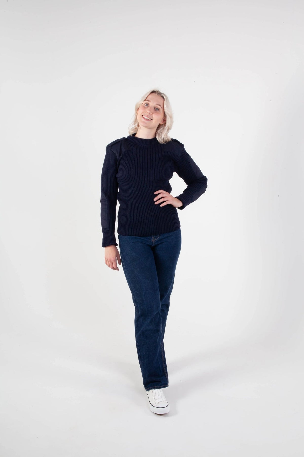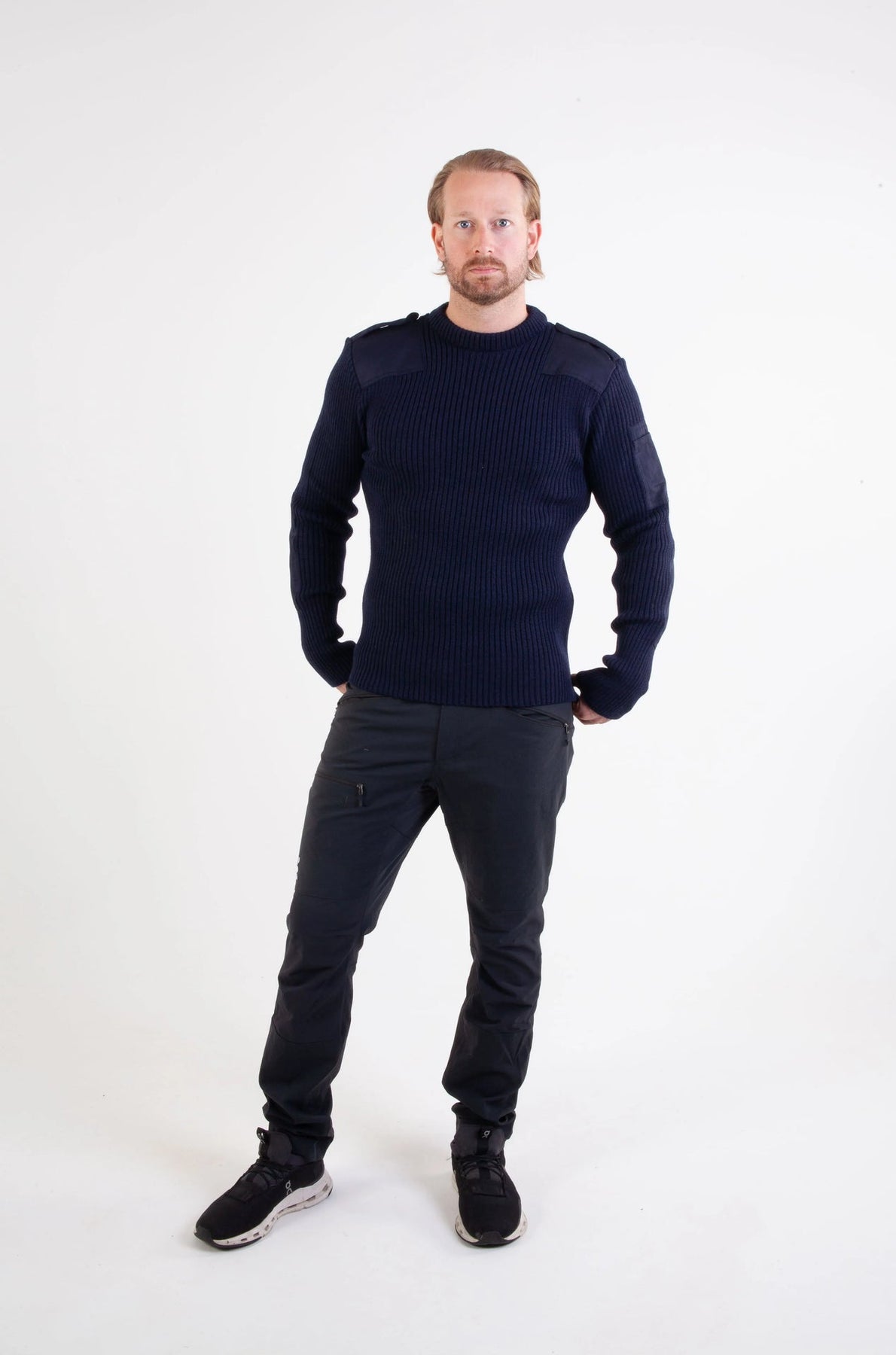 Norsk nato-genser marineblå – unisex ullgenser med forsterkningar