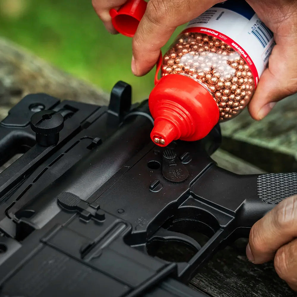 Geväret har en integrerad pump som du manuellt pumpar upp genom att dra i laddningsarmen några gånger så du inte behöver något drivmedel/påfyllning, detta gör detta gevär väldigt billigt och lätt att använda!