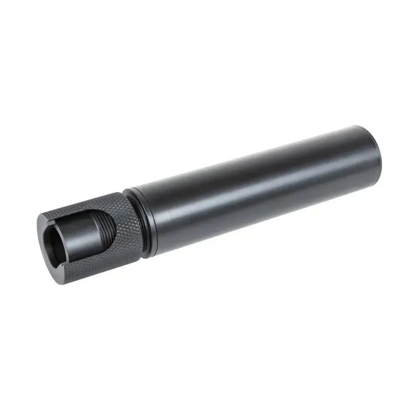 Specna Arms HALO PRO är en kvalitetsljuddämpare utvecklad för airsoftspelare som önskar både funktionalitet och hållbarhet. Denna ljuddämpare är tillverkad av slitstark PA6 aluminium, bearbetad med CNC-teknologi för hög precision och perfekt passform. Med en vikt på endast 255g och en längd på 20cm är den lätt, men stadig.
