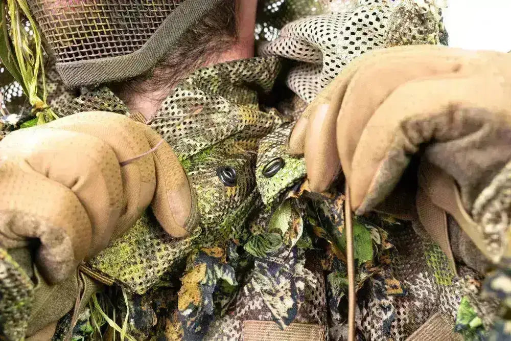 Den absolut viktigaste kamouflagedelen är jackan. Denna 3D kamouflagejacka är gjord av andningsbart mesh och kan bäras ovanpå dina vanliga kläder.