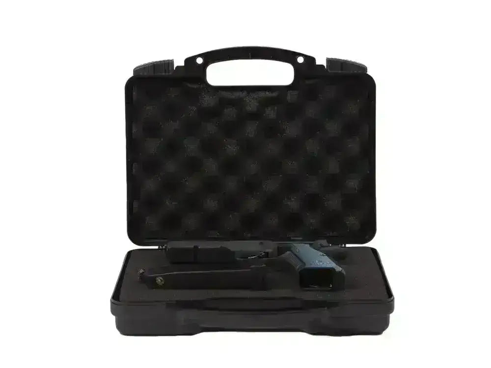 Ett praktiskt vapenfodral med mjukt skum på insidan som håller allt stabilt och säkert på plats. Resväskan har ett hårdplastskal med bärhandtag. Resväskan är stapelbar.