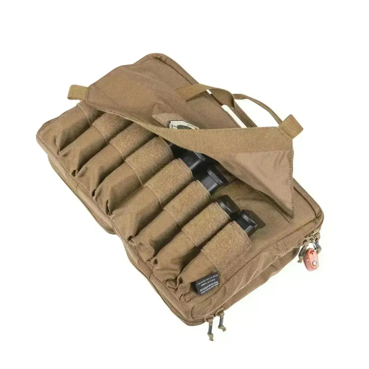 - Insida täckt med kardborre för tillbehör och fickor, som också förhindrar vapenrörelse (kompatibel med Versatile Insert System®)