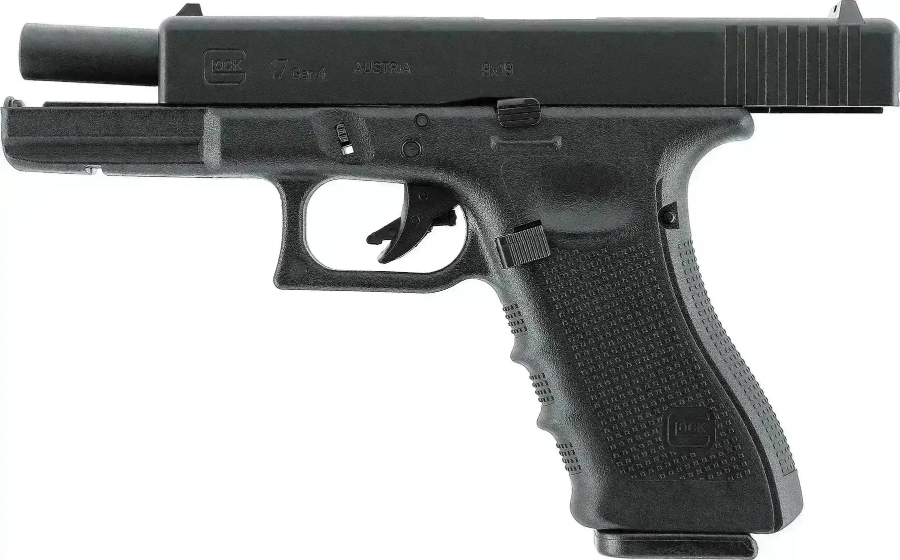 Glock 17 Gen4 er en fullt lisensiert GBB-replika med metallslide, polymerramme, automatisk trigger-sikring og to ekstra grepplater for tilpasning. Den har 21mm rail for lykt/laser, ambidexter magasinutløser og justerbar hop-up for fininnstilling av kulebanen.