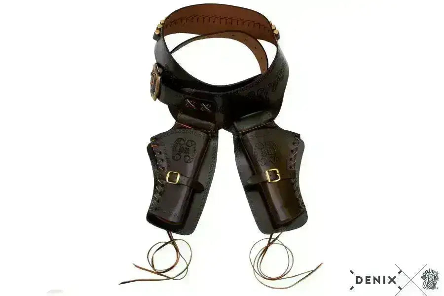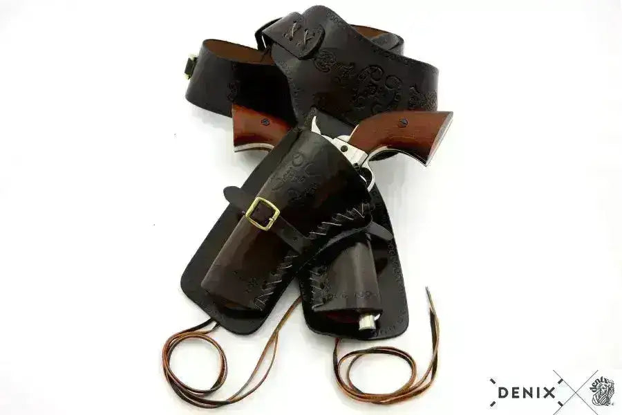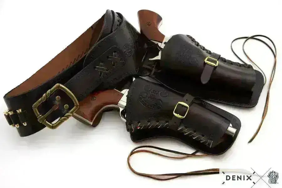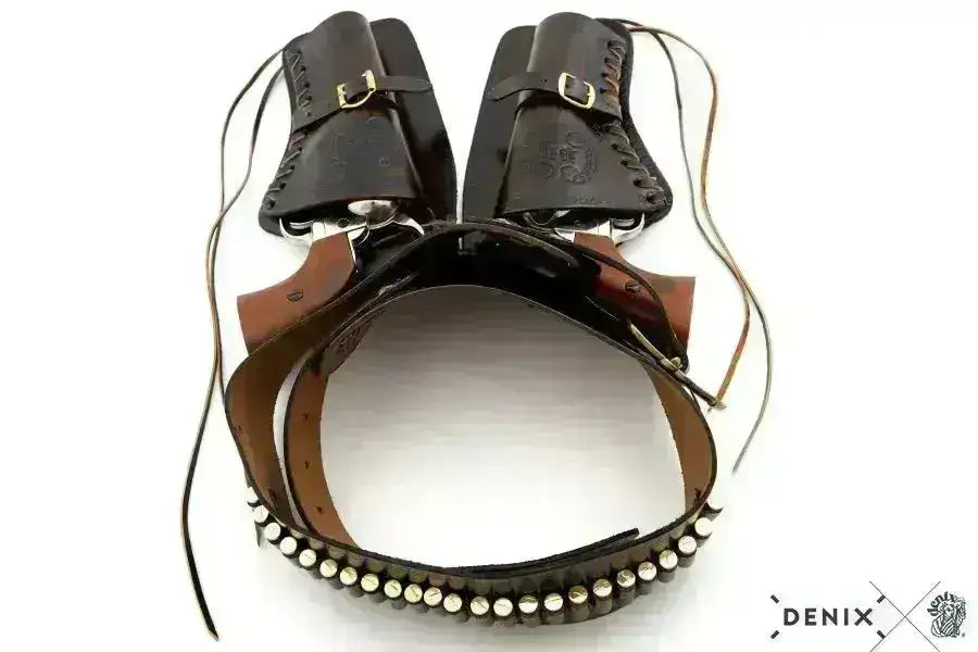 Denix Western bälte med hölster för både vänster och höger sida. Tillverkad av läder - cowboybälte av högsta kvalitet!