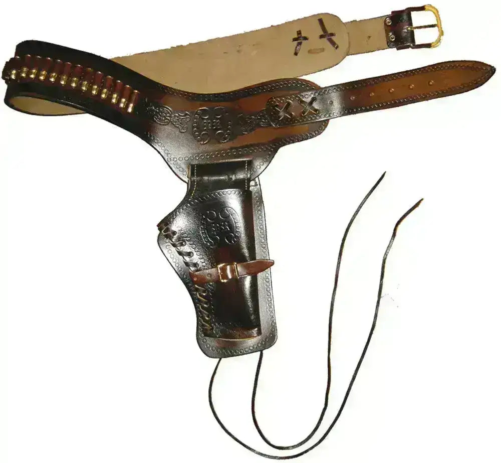 OBS: Detta är läder, varje bälte kommer att ha sin egen unika personliga touch och bilderna kan skilja sig något. Revolvrar och patroner ingår ej!