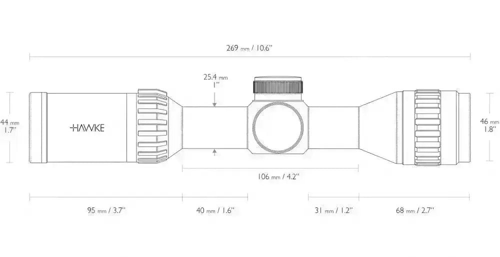 16-lagers helbelagd optik för fri sikt. AMX retikel etsat glas som tål mycket rekyl och har parallaxjustering. Detta kikarsikte erbjuder en mycket tydlig siktbild, solid konstruktion och variabel zoom från 2-7x.
