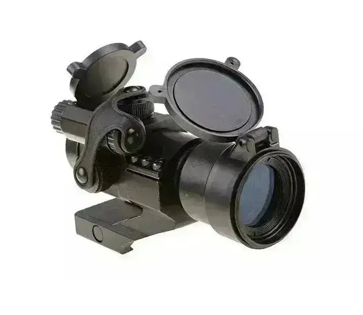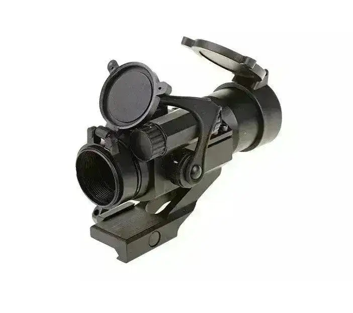 Solid rödpunktssikte av aluminium. Siktet är justerbart i vind- och höjdläge och har en röd/grön prick i olika ljusstyrka.