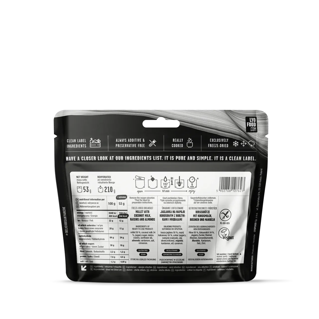 LYOFOOD Hirse Payasam – Indisk hirsegröt med kokos, russin och mandlar