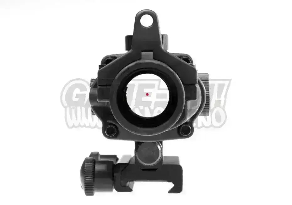 Passar till alla 21mm rails och kan fästas på utan användning av verktyg. Siktets punkt är fullt justerbar både horisontellt och vertikalt.