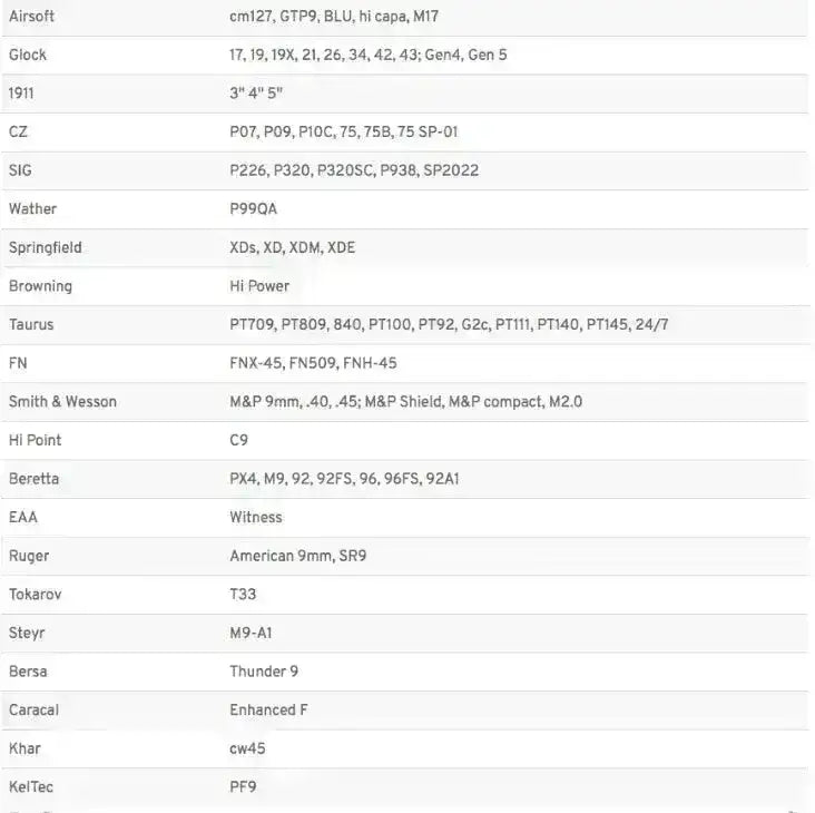 Se bild nr 2 för passningslista. Hölstret passar även fler modeller än vad som är listat.