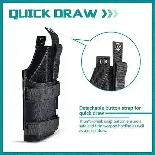 Ett bra universalhölster av slitstark nylon som är fullt justerbart och passar de flesta pistoler, även med laser eller ficklampa påsatt. Hölstret kan monteras på MOLLE-system som västar, ryggsäckar och MOLLE-plattformar, men kommer även med bältesfäste.