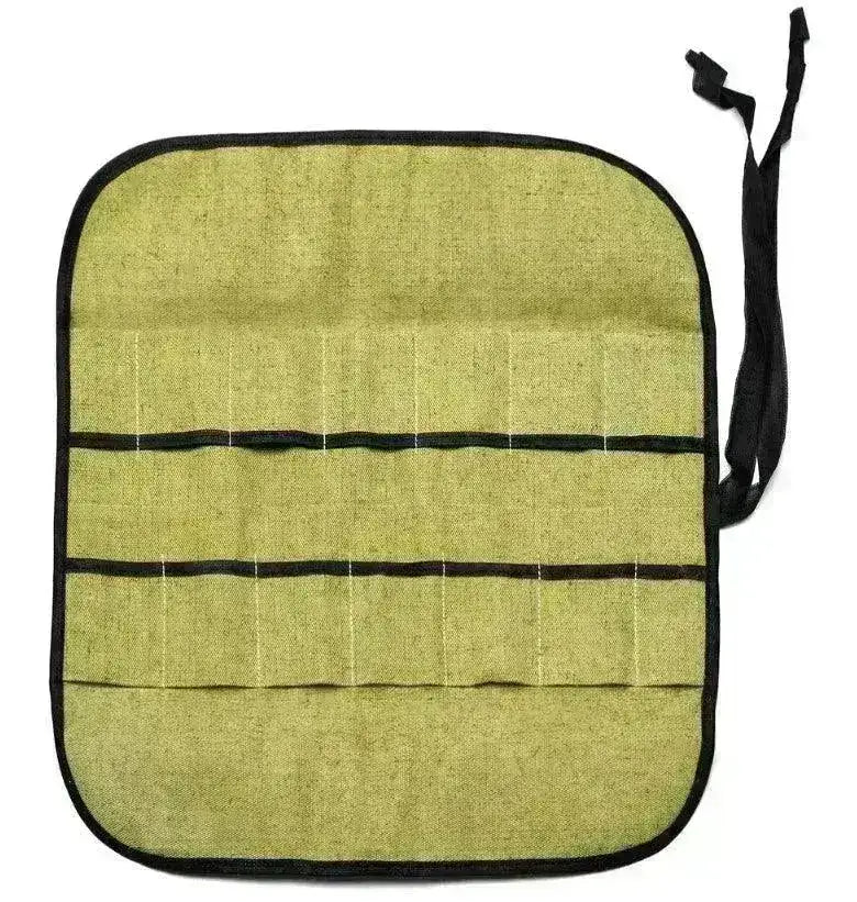 Ett praktiskt och snyggt canvasfodral med plats för totalt 12 knivar och andra verktyg. Bara ihoprullad.