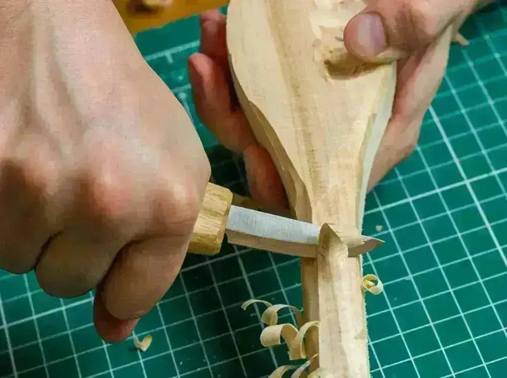 I setet får du 1st 26cm x 6,5cm x 4cm träämne format som en slev/sked för träsnideri och spikning.