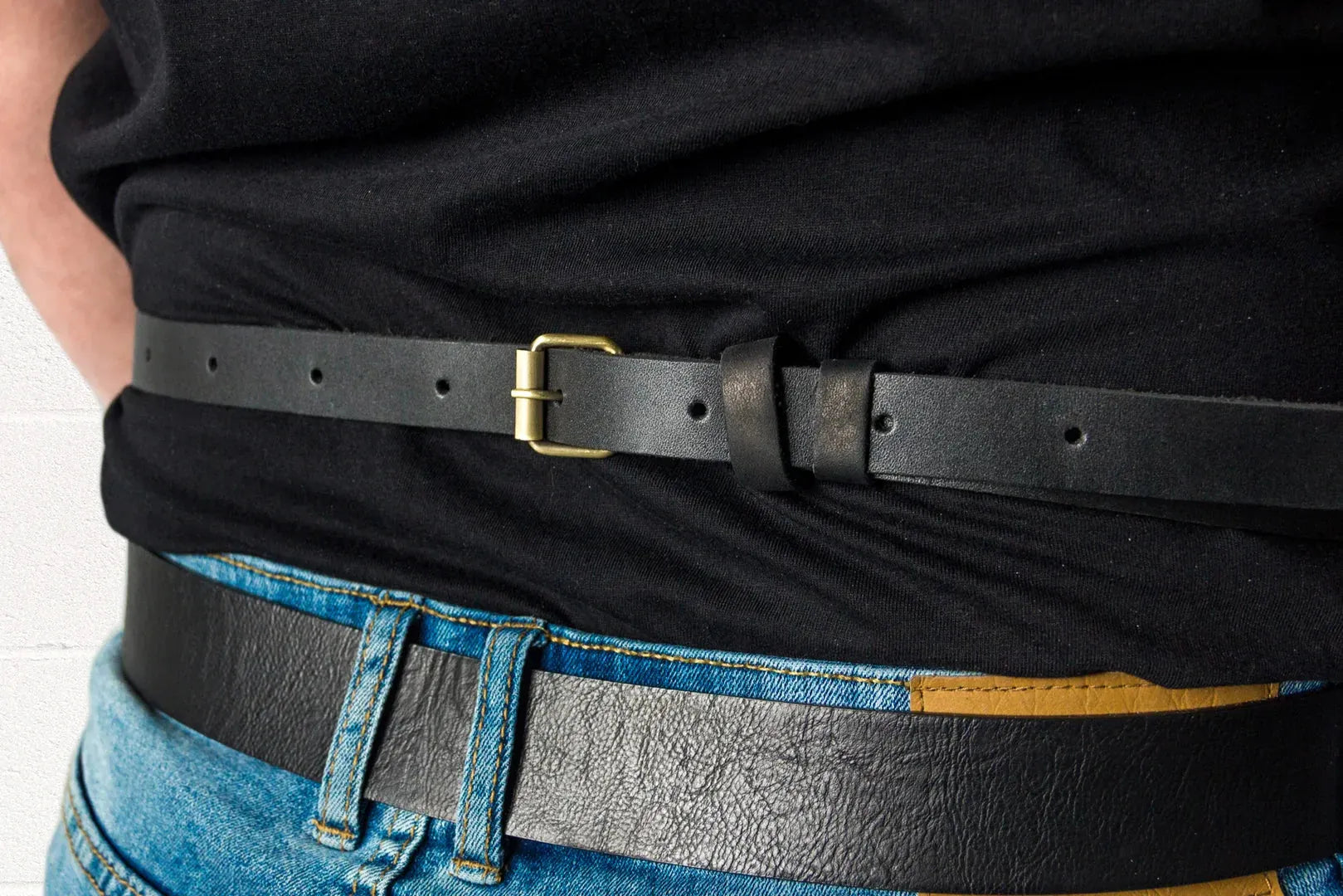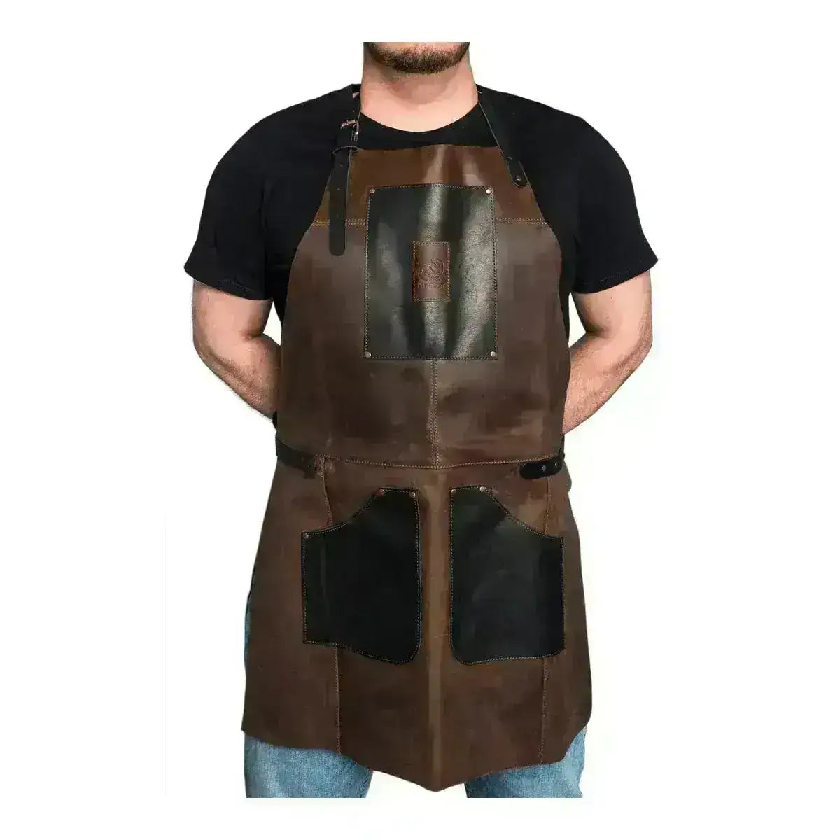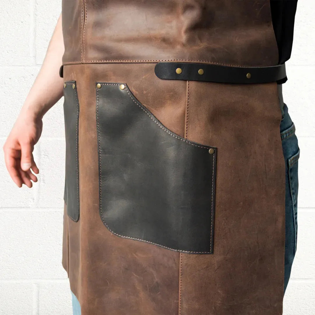 Slitstarkt och stilrent arbetsförkläde i brunt och svart läder – för kreativa och praktiska yrken