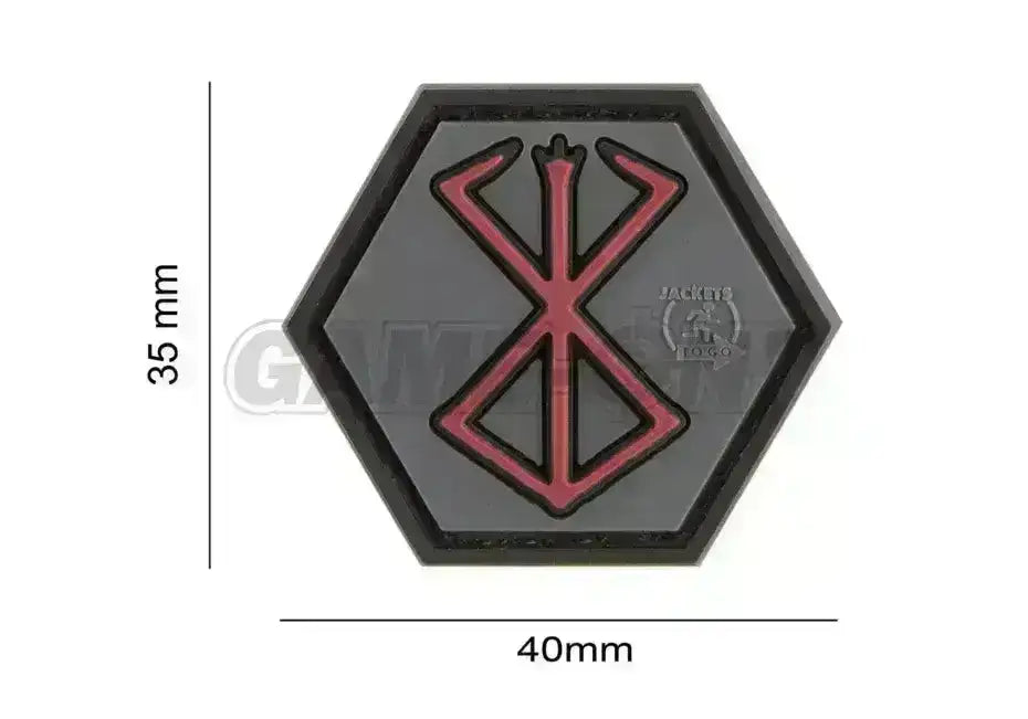 PVC-lapp med kardborreknäppning. Berserkerrunsymbolen med grå bakgrund. 40x35mm.