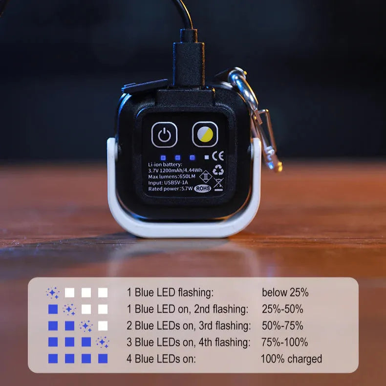Specifikationer: Ljusstyrka: Upp till 650 lumen Batteri: 1200mAh, USB-uppladdningsbart Vattentäthet: IPX5 (vattenresistent) Användningsområden: Camping, friluftsliv, nödbelysning Kompakt design: Enkel att bära och förvara