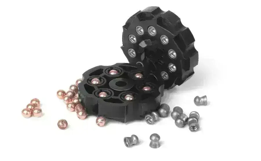 Det medfølger et 10skudds magasin til pellets og et 6skudds magasin til BBs.
