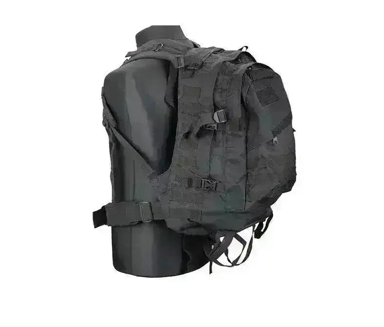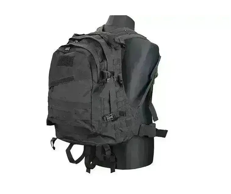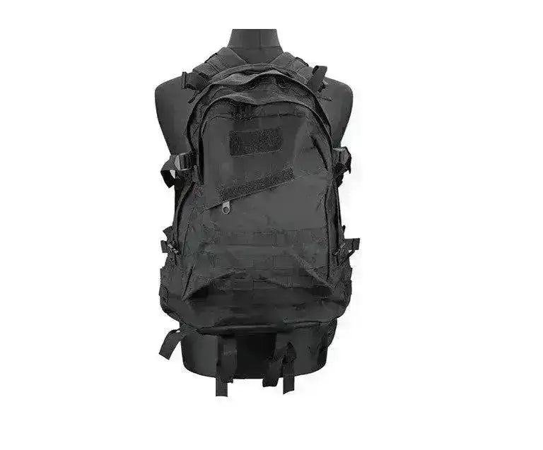 Bra och rejäl väska med praktiska lösningar. Denna svarta militärryggsäck Lämplig för resor, skola, vardagsbruk samt för airsoft och paintball. Ryggsäcken erbjuder gott om plats och justerbara remmar och ett magbälte, samt MOLLE-fäste så att du kan fästa extra moduler eller