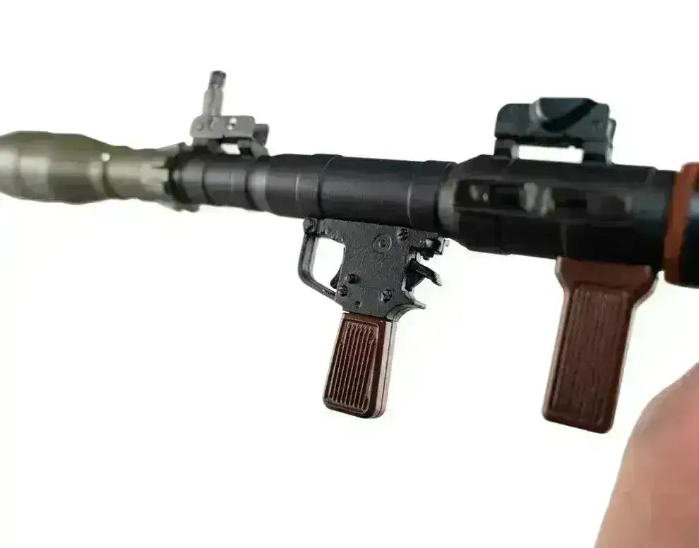 Denna coola RPG är i skala 1:4 och är gjord av metall och äkta trä. Stridsspetsen (raketen) kan tas bort och RPG kommer som ett kit. Snygg och noggrann minireplika som är en stilren dekoration till tv-rummet eller pojkrummet!