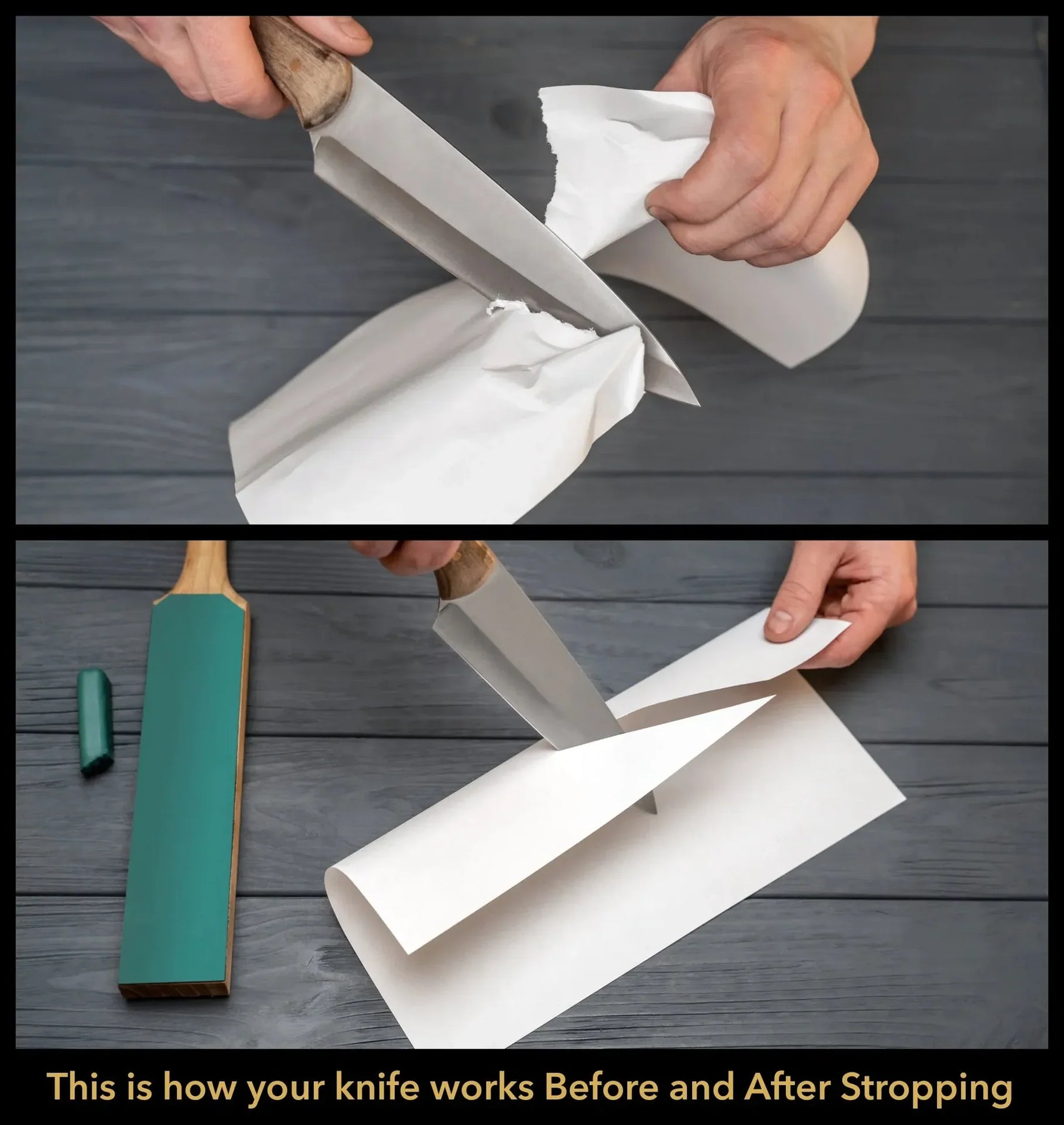 Uppnå rakbladsvassa kanter med LS6P1 – en dubbelsidig läderstropp för att underhålla alla typer av knivar och
