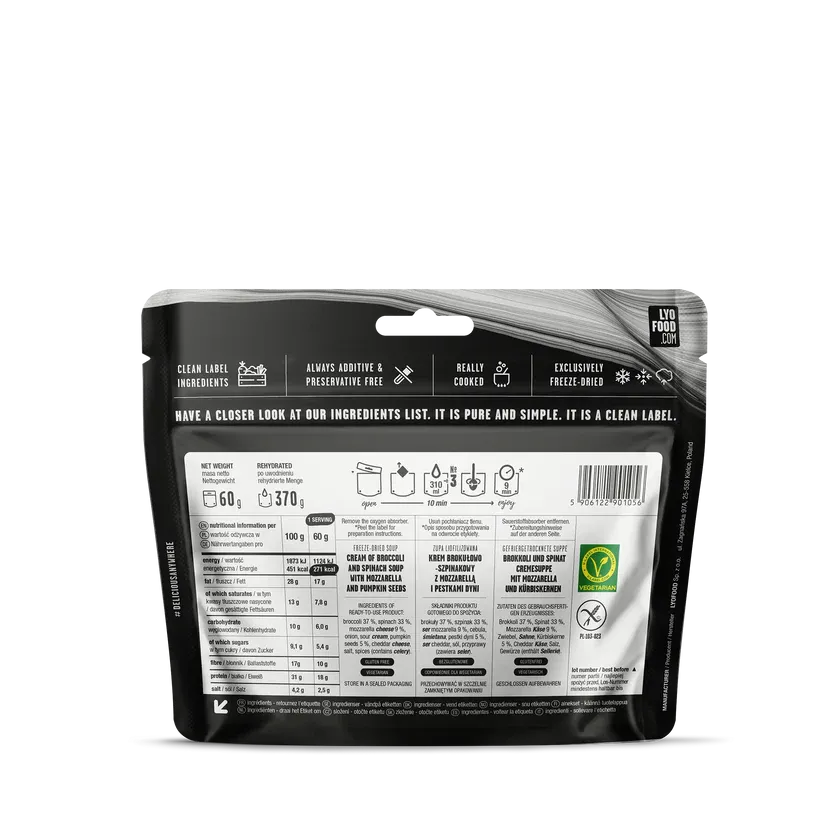 LYOFOOD Krämig Broccoli- & Spenatsoppa – Glutenfri krämig grönsakssoppa för utflykter