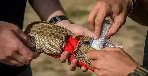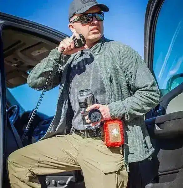 Liten svart Sanitetsväska med nätfickor på insidan med dragkedjor. Perfekt att hänga på ditt bälte, ryggsäck eller väst med MOLLE-fästen. Sanitetsfickan gör att du kan packa det viktigaste du behöver i din första hjälpen-låda utan att ta för mycket plats.