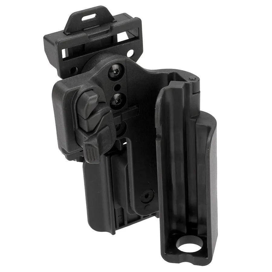 APS Quantum Mechanics taktiskt hölster är tillverkat i höghållfast polymer och är designat för operatörer som kräver både hastighet och säkerhet. Hölstret har ett aktivt låssystem med fjäderbelastad öppning som ger blixtsnabb tillgång till vapnet när det behövs som mest.