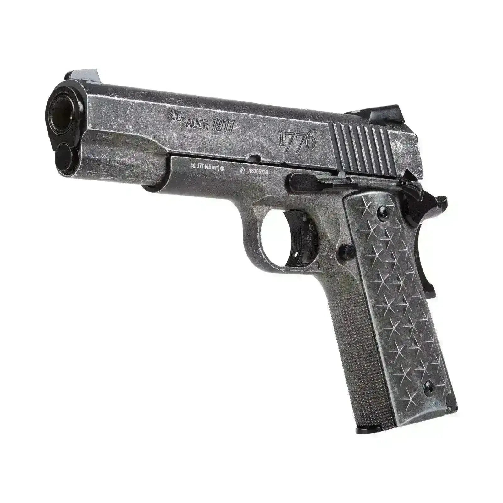 Längs med sliden är "1776" och "We the People" ingraverat – en hyllning till amerikansk oberoende. Greppanelerna har 50 stjärnor för extra grepp och ett unikt, autentiskt utseende. Pistolen levereras med en medvetet sliten finish för att framhäva den klassiska looken.