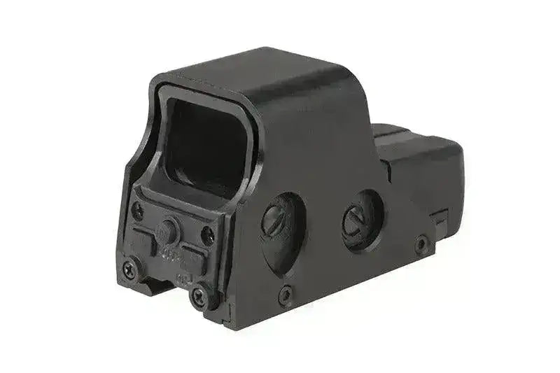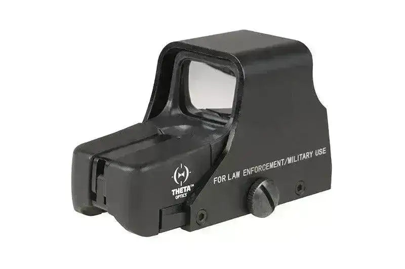 Detta rödprickssikte från Theta Optics är ett holografiskt rödprickssikte som ofta ses på M15/M16-gevär. Du kan välja mellan ett rött eller grönt hårkors och är utmärkt att använda både på dagen och i skymningen tack vare justerbar ljusstyrka. Siktets siktpunkt kan enkelt justeras både vertikalt och horisontellt och fästs enkelt på de allra flesta 21mm skenor. Siktet är tillverkat med en blandning av polymer och metall, vilket gör det mycket hållbart. Kicken drivs av 4 st LR44-batterier som enkelt monteras i kikarsikten.