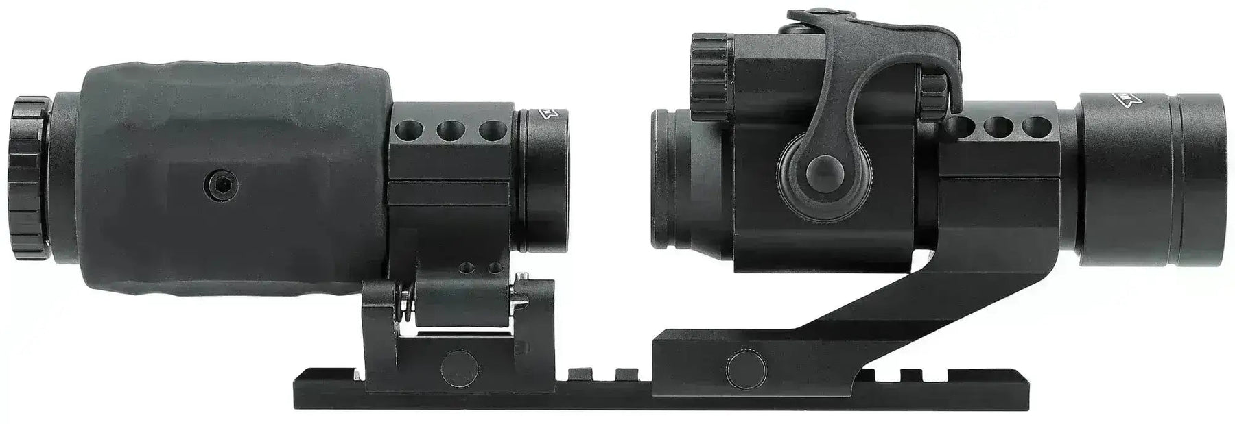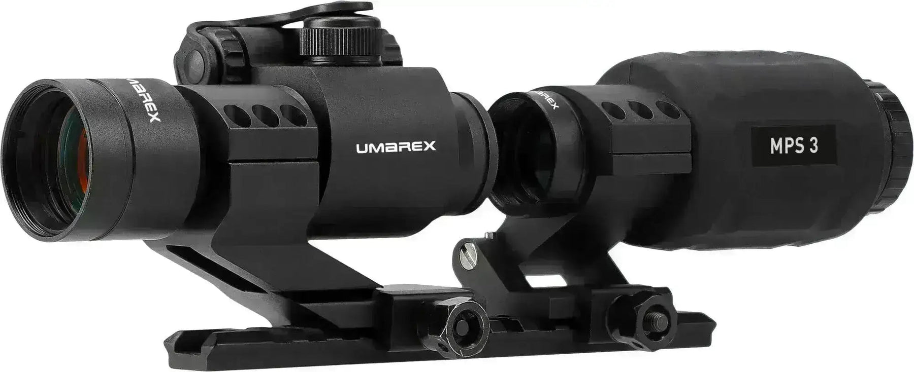 Umarex MPS (Magnifying Point Sight) är en kombination av ett bra rödpunktssikte, samt en 3x förstoring, som kan lutas ut åt sidan när den inte används. Således är detta set lämpligt för nästan alla tillfällen, oavsett om det är på det öppna fältet eller i CQB-situationer. Setet kommer även med en 15,5 cm lång 21 mm skena och en insexnyckel så att du kan justera rödpunktssiktet i sidan och höjden.
