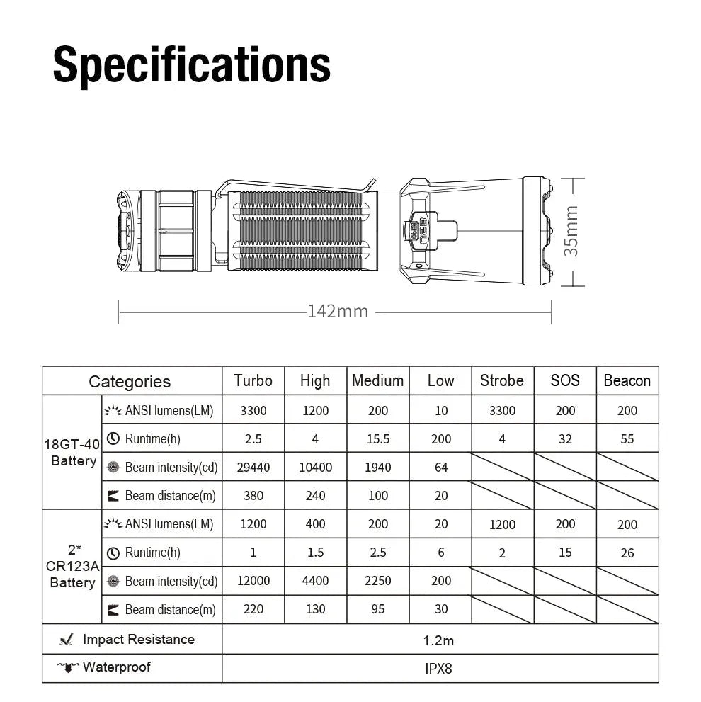 Klarus XT11GT PRO-V3 är en kraftfull och mångsidig taktisk ficklampa designad för professionella användare, friluftsentusiaster och nödsituationer. Med en imponerande ljusstyrka på 3300 lumen lyser denna ficklampa upp områden upp till 380m, perfekt för krävande förhållanden.