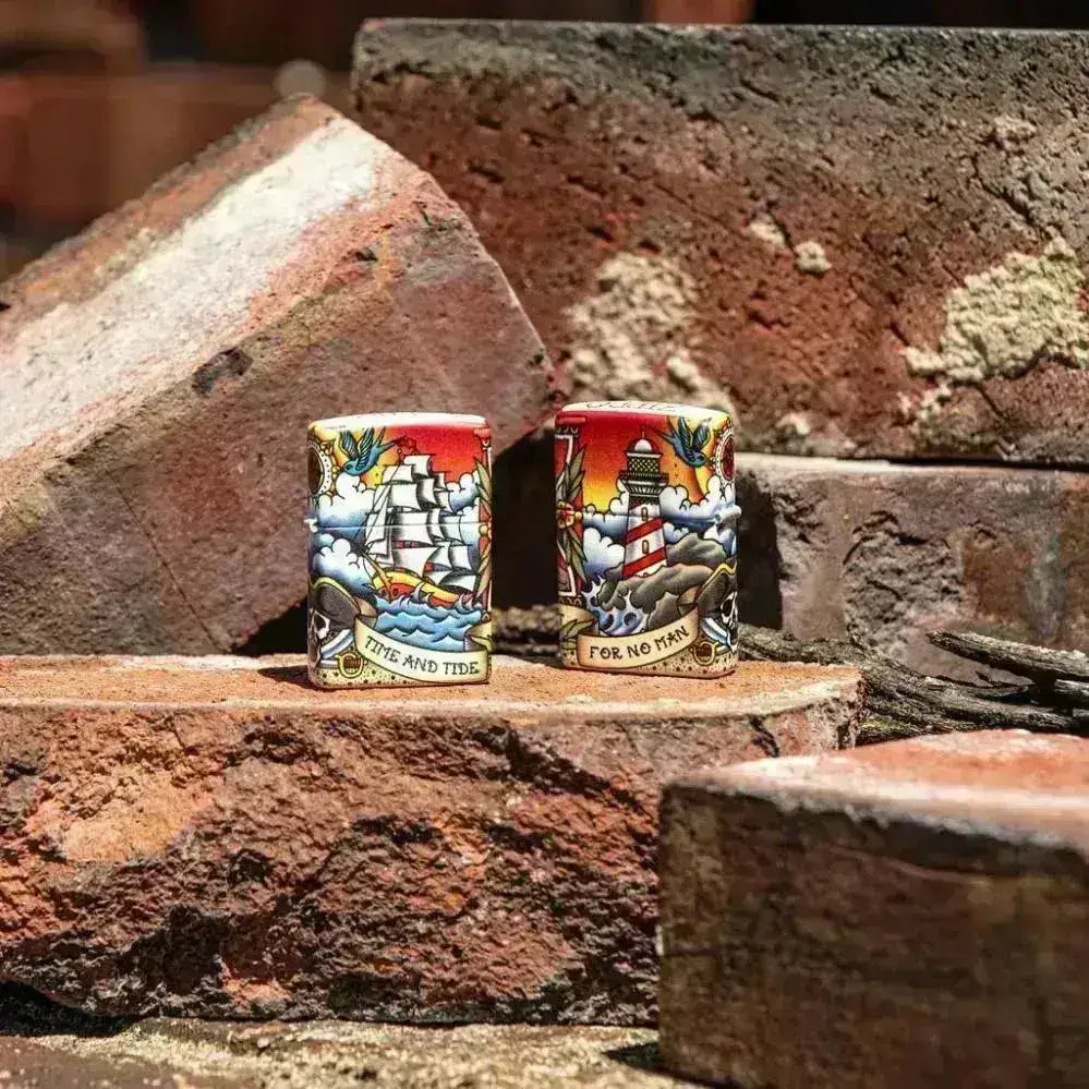 Så kasta loss och hissa focken, för denna Zippo med snygg old school tatuering-design är perfekt för samlingen eller till en gammal sjövarg.